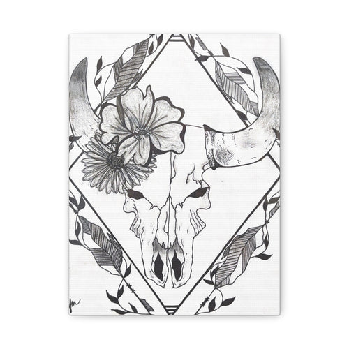 Floral Bull Skull Canvas Print — Black & White Botanical Skull Wall Art